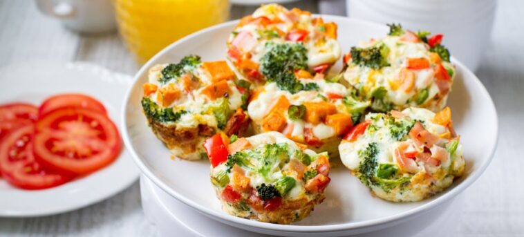 Meal prep these delicious, high-protein Egg White Muffins with turkey bacon, cottage cheese, and veggies for a quick breakfast on the go!