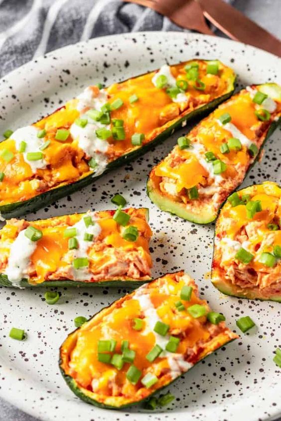 Air Fryer Buffalo Chicken Zucchini Skins