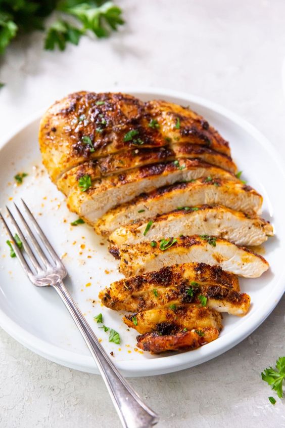 Air fryer bone-in, skin-on chicken breast brined in buttermilk and seasoned with a mix of herbs and spices makes for perfectly juicy chicken.