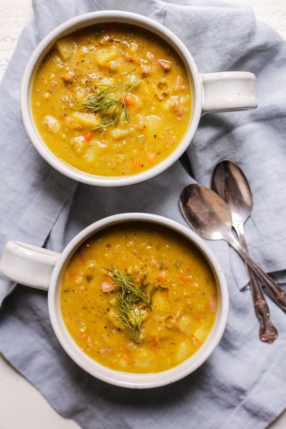 This is my go-to Split Pea Soup recipe with ham, made with just 6 ingredients not counting salt, pepper and olive oil. The soup I crave on cold nights!
