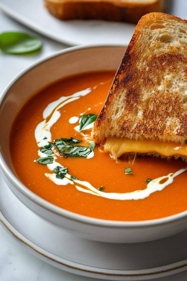 First time making tomato soup and it turned out absolutely delicious! Paired it with a steak and mozzarella grilled cheese 🍅🧀🔥