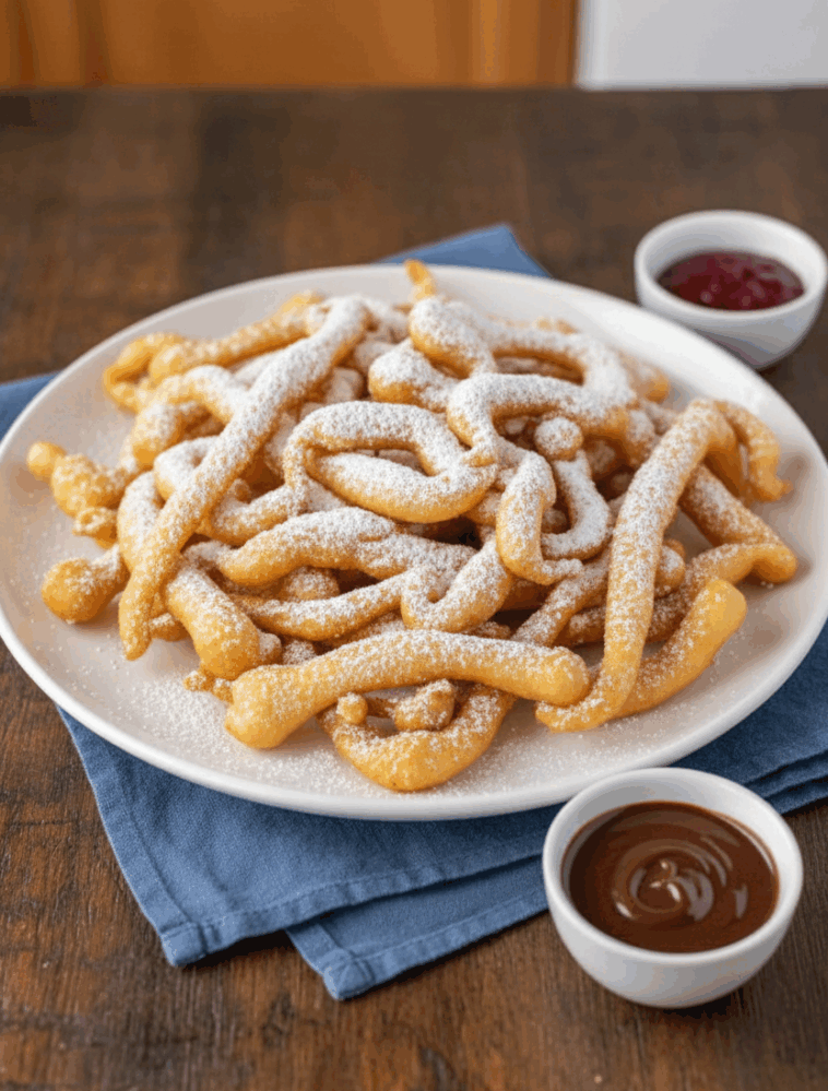 These funnel cake fries bring all the nostalgic fair flavor to your home — crispy, sweet, and gluten-free! Think of them as funnel cake reinvented into fry shapes, dusted with powdered sugar and perfect for dipping.