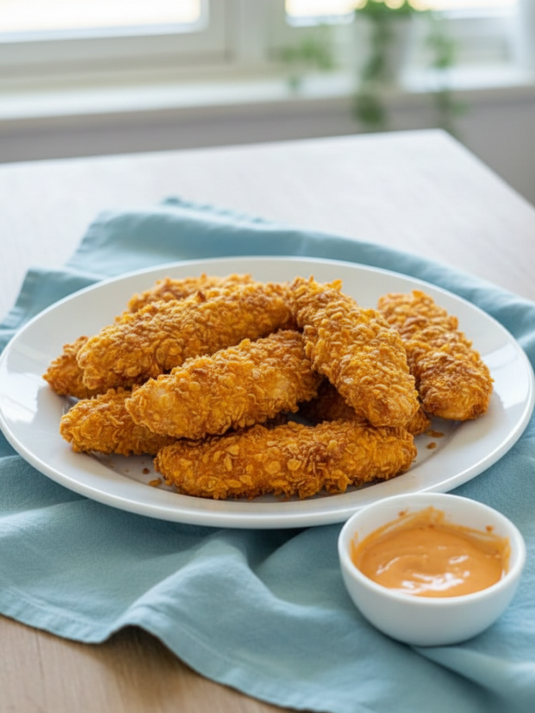 These gluten-free chicken tenders are perfectly crispy on the outside and juicy on the inside. Made with a crunchy cornflake coating and simple seasonings, they’re an easy family favorite for dinner, lunchboxes, or game-day snacking—no gluten required.